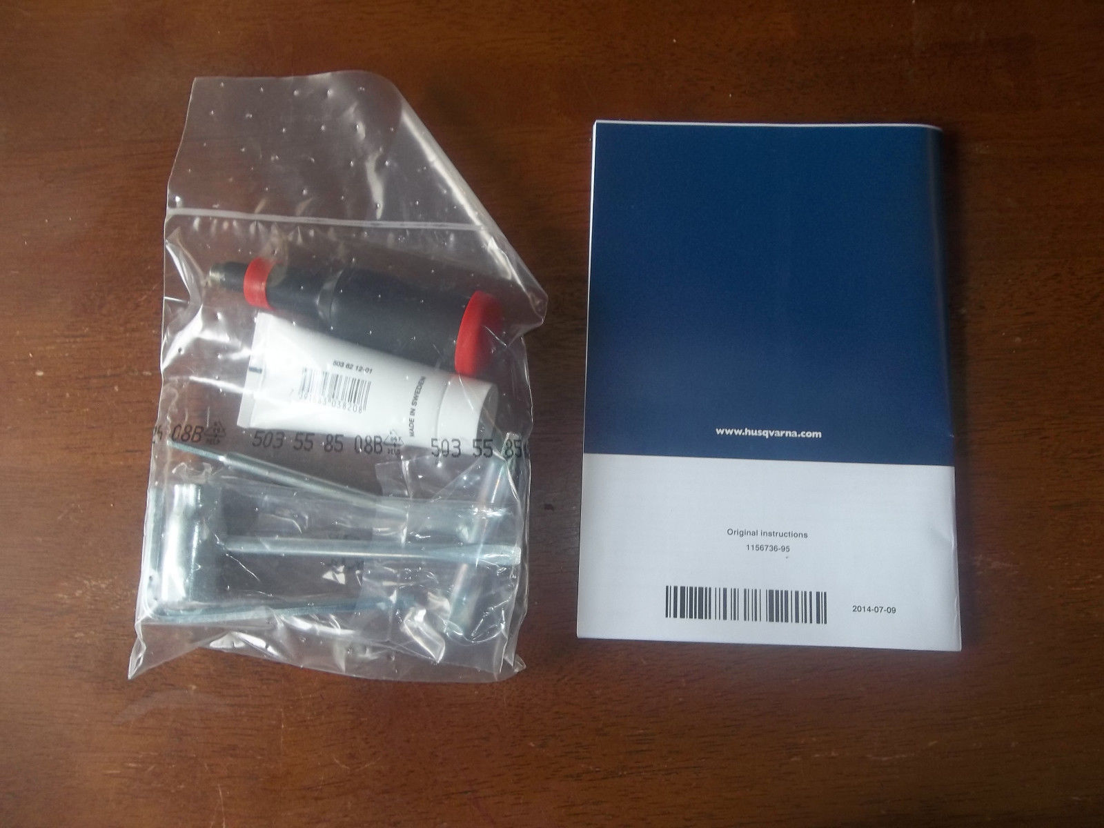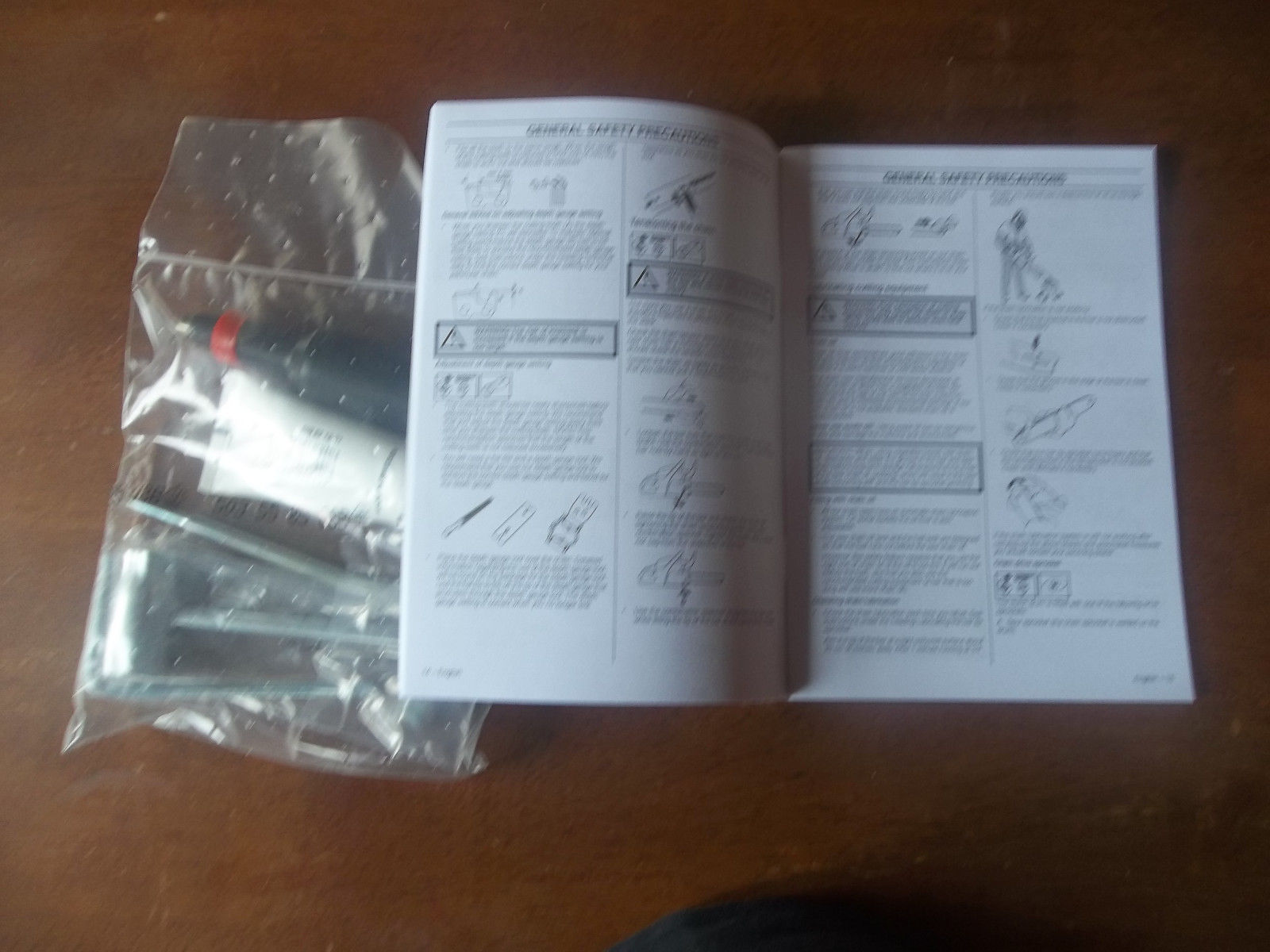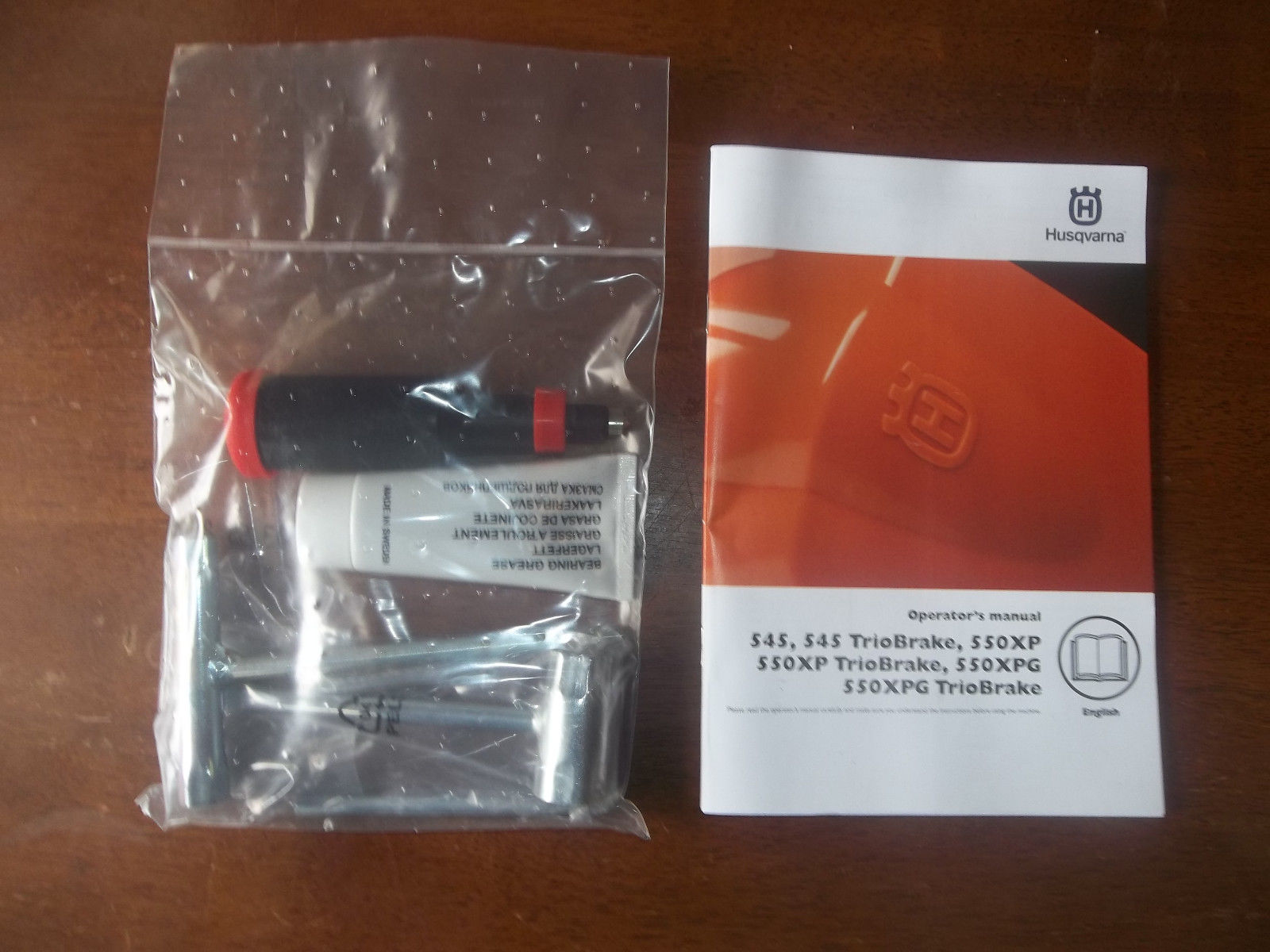 Husqvarna 550XP, 545 Chainsaw Operator’s Manual and tools(Bar Scrench, allen wrench tools,bar grease gun, tube of grease) still sealed in factory bag, never used. Please see pictures, use zoom function for close-ups. What you see in the pictures is the exact item you will be receiving,nothing more and nothing less. Remember, Sold AS-IS, No Returns.Please insure fitment for your particular model and suitability for your intended use before purchase. I am NOT a dealer.PLEASE, ask any questions you have BEFORE you buy or bid, and I will do my best to answer them. Immediate payment due on Buy-It-Now, within 48 hours of close of auction or Best Offers.I usually ship within 48 hours of cleared payment, except on weekends and holidays. Shipping is Free USPS First Class Package, or USPS Priority Mail, whichever is more economical, to Lower 48 States.Thank You For Your Interest!