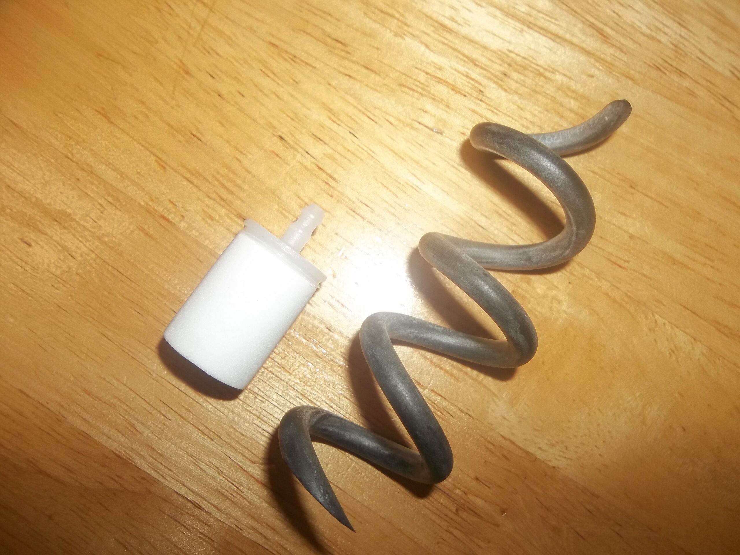 NEW Replacement Fuel Hose Line, Fuel Filter, for Jonsered 2149, 2152 Chainsaws. NOTE: This is the Fuel Supply Pick-Up Hose ONLY,some later 2153 models have a primer bubble and return hose in addition, this Kit does NOT include the Primer or Primer and Return Hoses. This kit consists of (1)- 581756202 Fuel Hose Spiral, (1)- 503443201 Fuel Filter. Just remove old fuel hose and filter, thread one end of spiral fuel hose through the hole in the fuel tank (a long-nose bent(45 degree or 90 degree angle) pair of needle-nose pliers are very helpful) and pull the hose through from inside the tank. ThenĀ clip off the points on the end of the fuel hose so the ends are square, then attach the fuel filter on the tank end and the other end to the fuel nipple on the carburetor. Please Look at the Pictures. What you see in the pictures are the exact item you will be receiving.