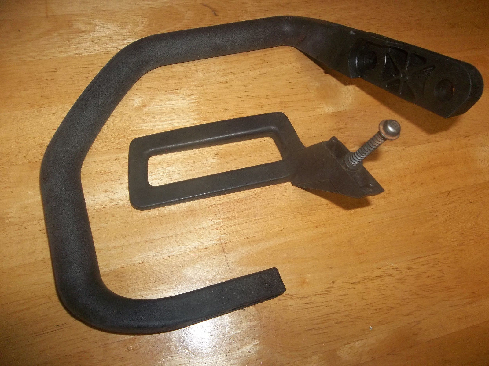 Here we have a USED Front Handlebar from a Poulan 2150 Chainsaw, in good condition. Should also fit a 1950,2175,2075,2055,2375 Wild Thing.Please Note-this will NOT fit the Newer Wild Things, ONLY the 2375 Wild Thing.Also will fit corresponding Craftsman Models, but I do NOT know the Craftsman Model Numbers. Includes the Hand Guard, which is used on saws that do not have a chainbrake. The Hand Guard is NOT used with saws that have a chainbrake. I am including it in case your saw does not have a chainbrake. NO Mounting Hardware Included, except the screw that holds the hand guard to the handlebar. Has scrapes, scratches, etc. from use, but it is not cracked or broken. These are No Longer Available New from Poulan. Please Look at the Pictures. What you see in the pictures is the exact item you will be receiving,nothing more, nothing less.