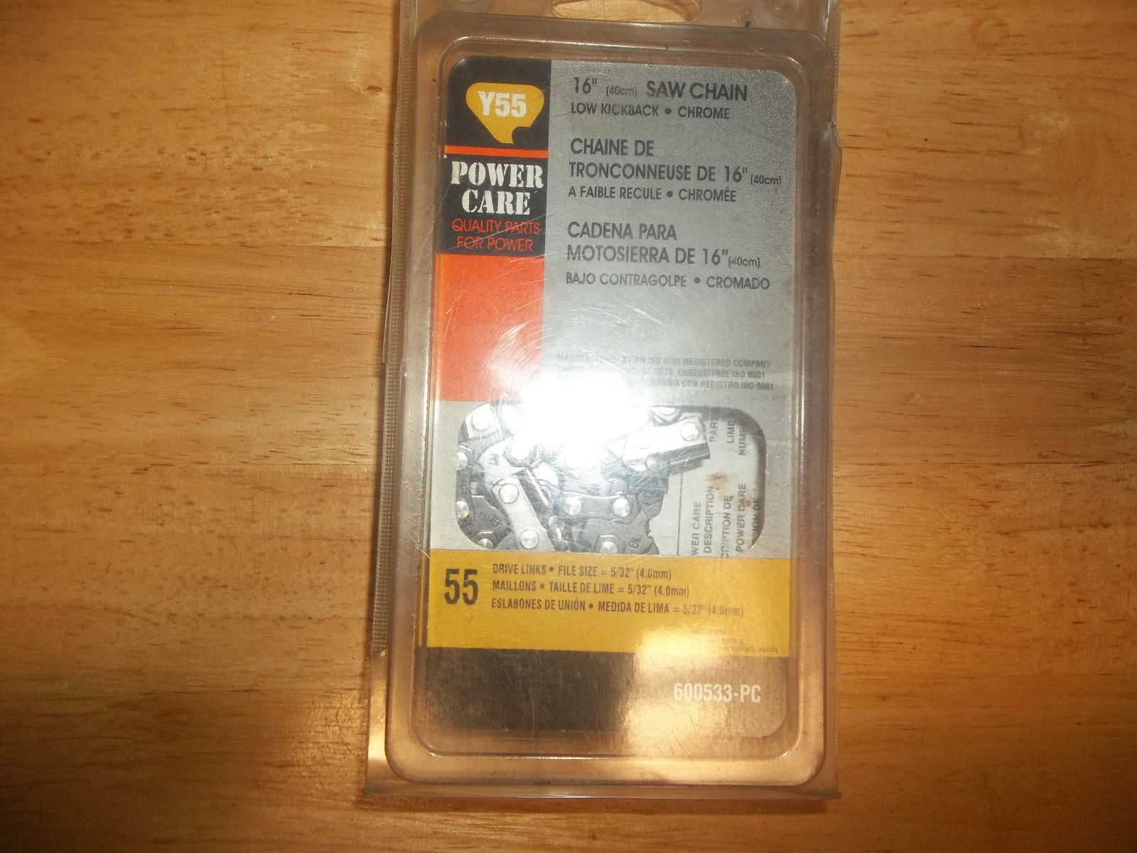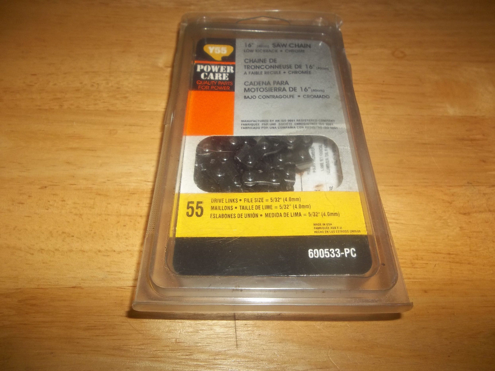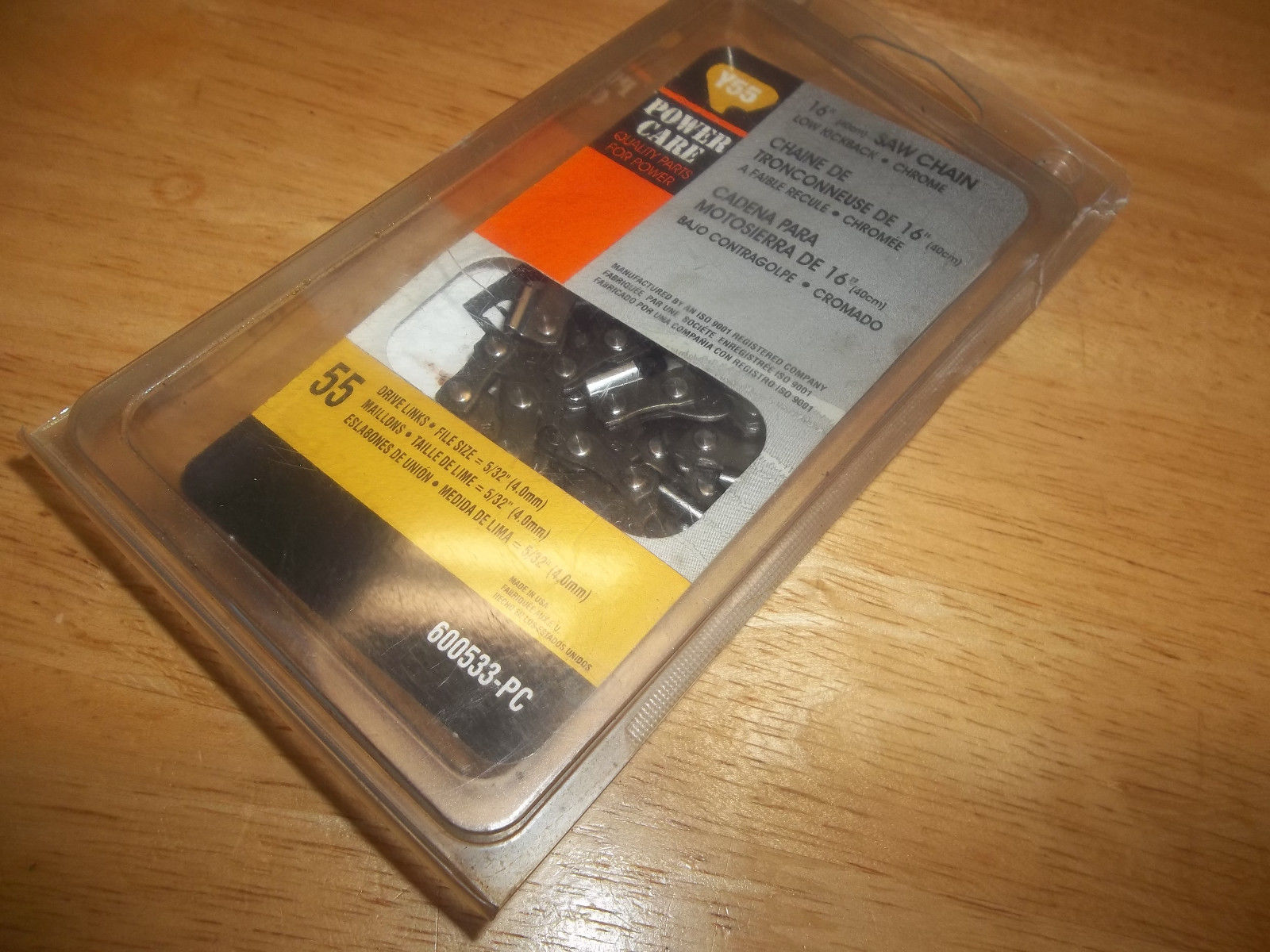 Here we have a NEW Old Stock Power Care(Carlton) 16″ Chainsaw Chain, 3/8 Low Profile Pitch, .050 Gauge, 55 Drive Link. Fits Certain Models Stihl Chainsaws, some McCulloch. Since all models of Chainsaws may come with any of a number of combinations of Bars and Chains, I make no claim of fitment to any particular saw model. What is important to know, is if your saw takes a 3/8 Low Profile Pitch, .050 Gauge, 55 Drive Link Chain. 16″ Called Length. If it does, this chain should fit your saw. If you are unfamiliar with Pitch, Gauge, and Drive Link Count, get someone who is familiar with this to check your saw for this before purchase. This chain is New in the factory plastic bag, never opened. No Box. Please Look at the Pictures. What you see in the pictures are the exact item you will be receiving,nothing more, nothing less.